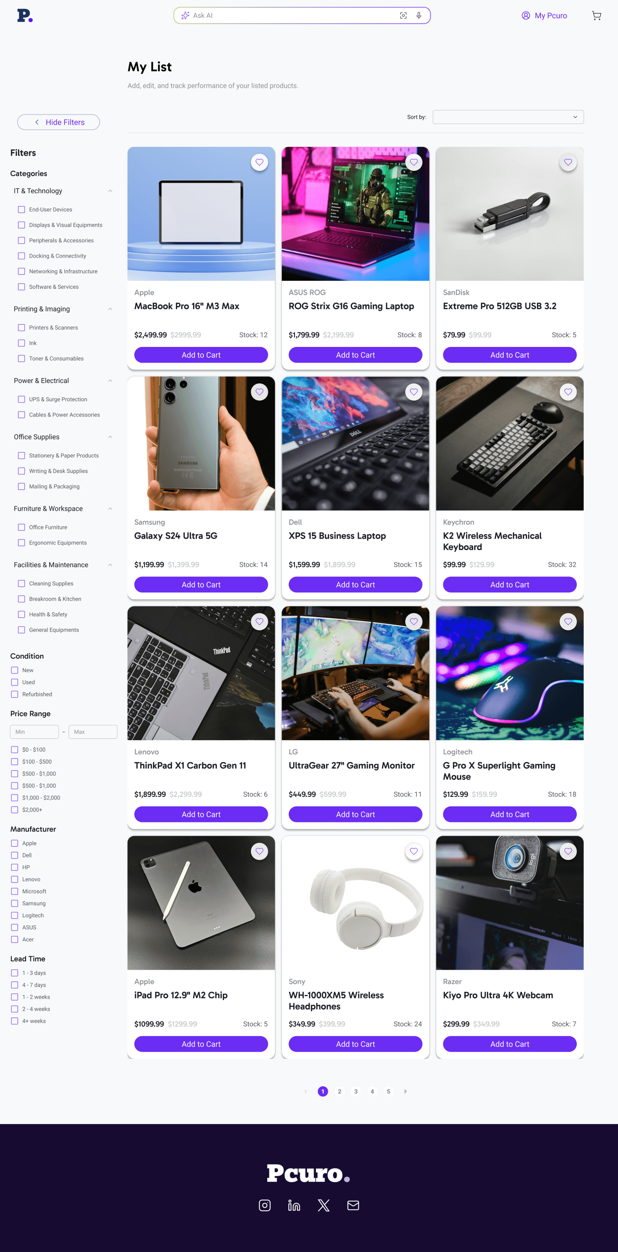 Describe what you need and Pcuro’s AI instantly connects you with relevant suppliers.